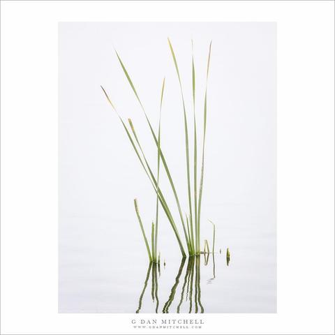 “Wetland Plants” — Slender plants growing in a quiet wetland pond.