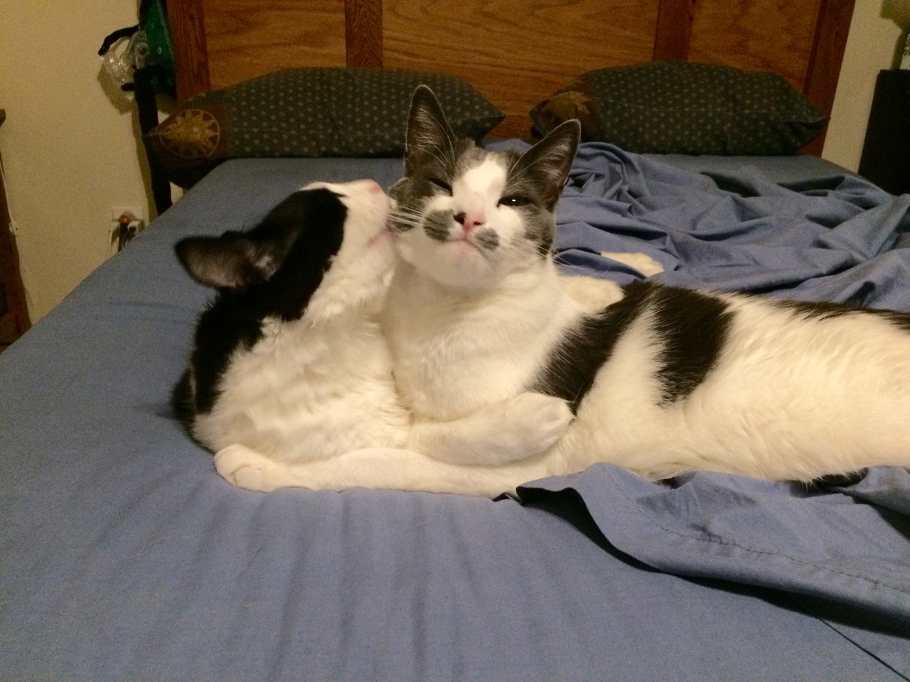 i uncovered my camera to take this pic of Kepler enjoying (or enduring) some corporal cuddling after harassing Ginger. [image description: a grey and white cat head staring at the camera with enormous eyes.] https://icosahedron.website/media/fp5Y-iwVczdhPNyqv6I