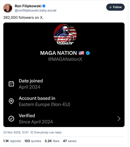 "Most MAGA and America First accounts are actually foreign trolls."