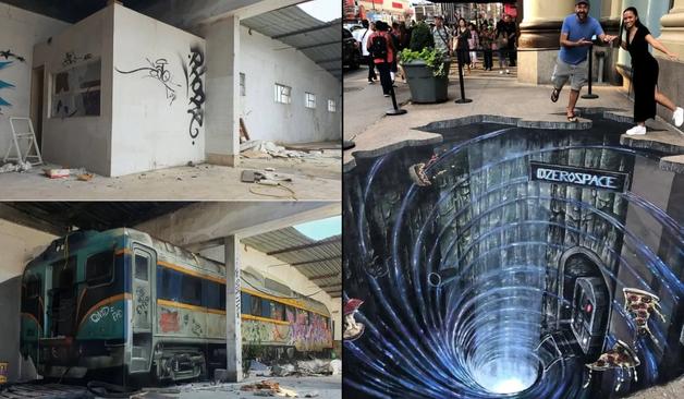 Across cities from Patras to Mons, walls and pavements turn deceptive. A rabbit runs late through gold scrolls, a tiger leans out of a frame, and an abandoned warehouse hides a train that isn’t there. Each surface plays tricks on the eye — even concrete can lie. More: 3D Masterpieces (18 Photos) 1. Time Hole […]