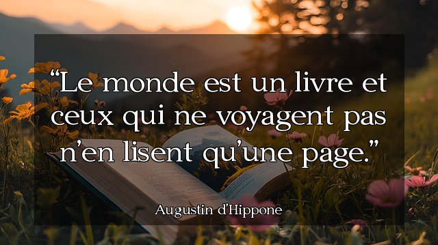 Le monde est un livre et ceux qui ne voyagent pas n’en lisent qu’une page. #augustindhippone https://quotus.wakonda.guru/read/2207/le-monde-est-un-livre-et-ceux