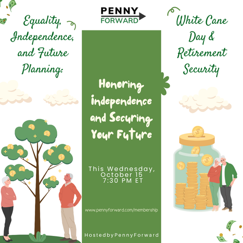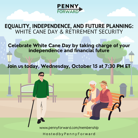 Join Equality, Independence, and Future Planning: White Cane Day & Retirement Security, a special Wednesday Workshop honoring Blind Americans Equality Day (White Cane Awareness Day).