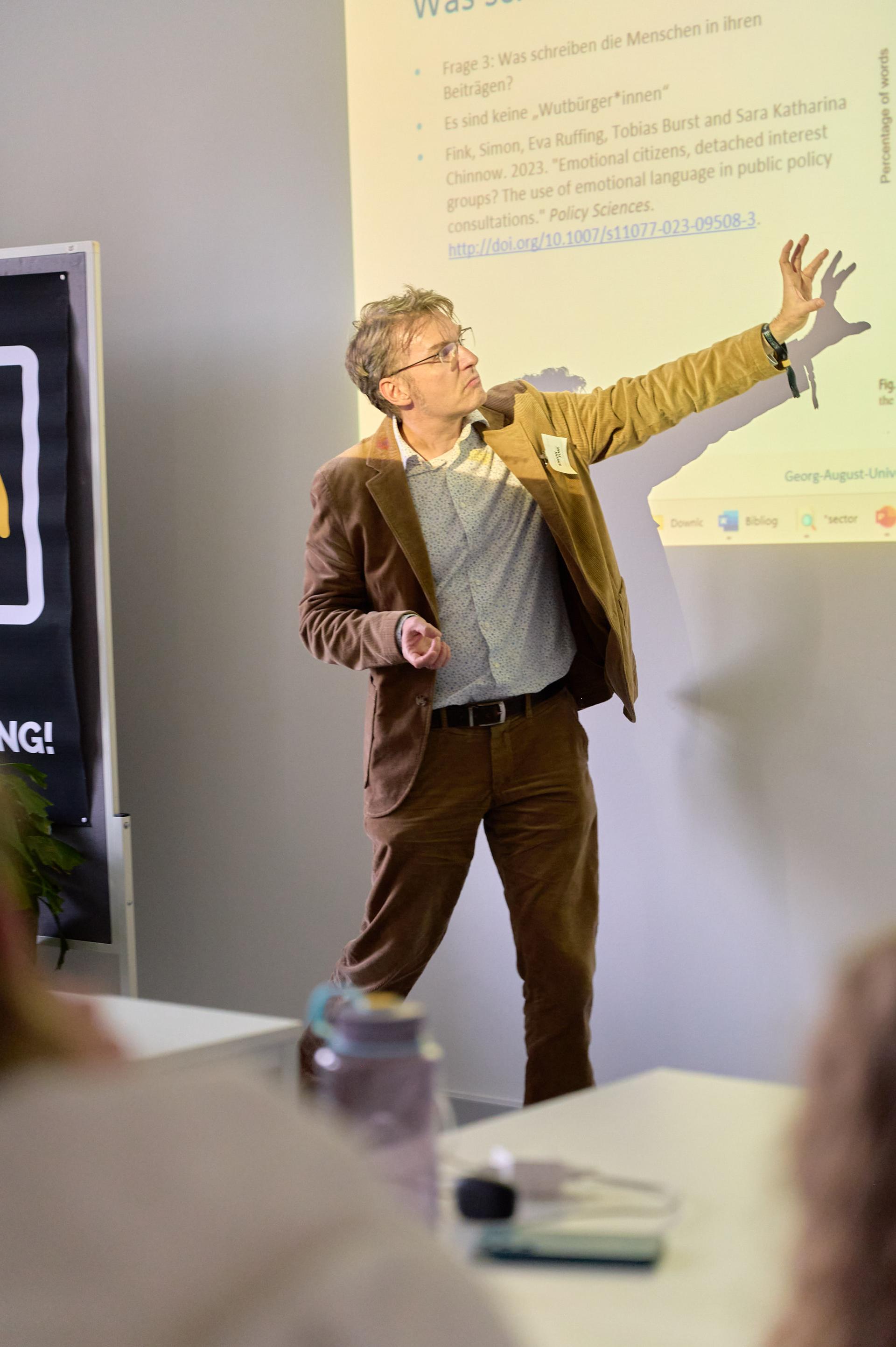 #lcoy25 - das hat Freude gemacht, über Forschung zu Bürger*innenbeteiligung und Energiewende zu diskutieren. Hier zeige ich gerade, wie man beim Schattenspiel einen bösen Hund an die Wand wirft.