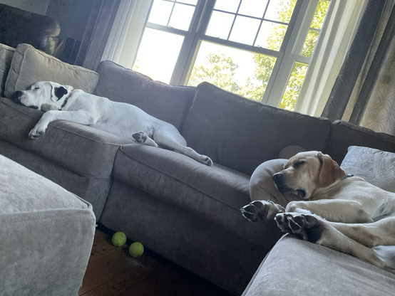 May you get as much rest after a long work as these two who do nothing at all except bark at the wind and hoover up as much food as possible.