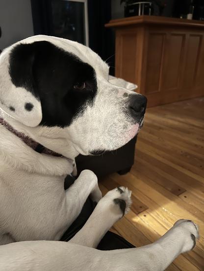 You want your Newfoundland mix dog to sit next to you instead of in the comfy chair across from you?