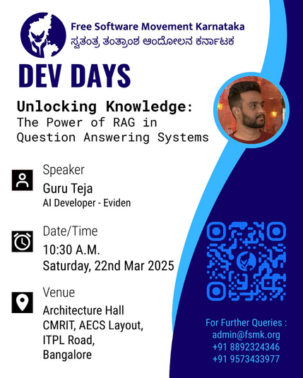 #AI #FOSS #GenerativeAI #LLM #AICommunity #Developers #TechTalk #Bangalore #Bengaluru #BangaloreEvents
