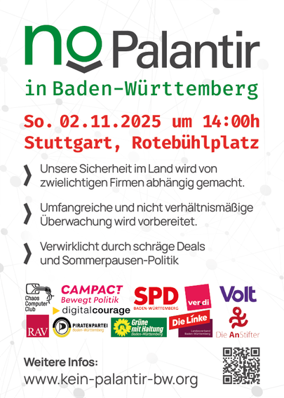 Protest gegen Palantir am Sonntag 02.11. 14 Uhr in Stuttgart, beginnend auf dem Rote-Bühl-Platz.