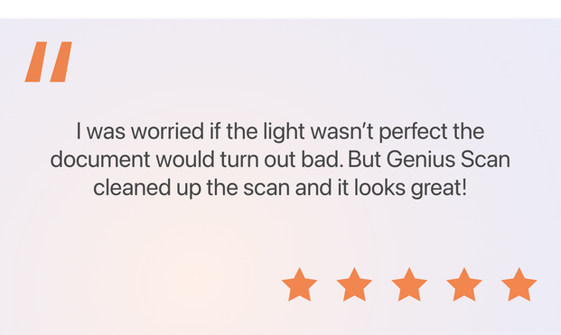 Whether itβs an idea, a snippet of dialogue, or a page scribbled on the back of a magazine, a piece of paper, or even a napkin, use Genius Scan to save your story pieces so you can focus on writing the next chapter.