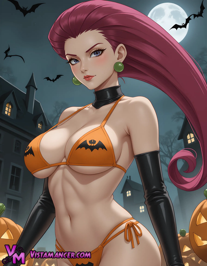 #LegendofZelda #NintendoIt’s a spooky night in the Pokémon universe with Jessie rocking a bat-themed bikini amidst glowing jack-o’-lanterns and a mysterious mansion under a bright full moon!