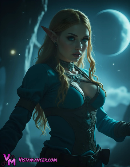 Princess Zelda Beneath the Moonlit Veil - Her sapphire eyes reflect the weight of destiny, the calm before a storm that only she can command.